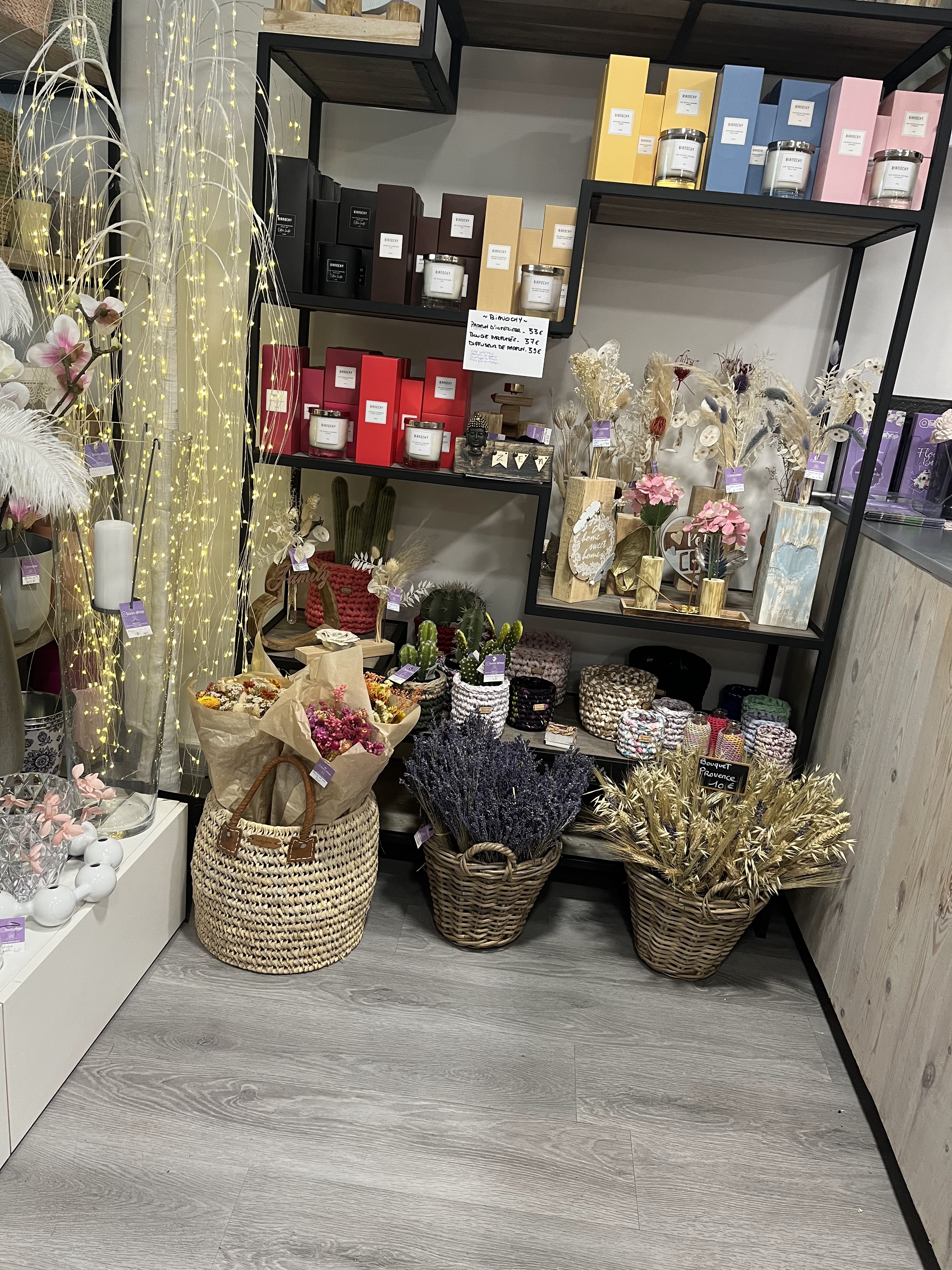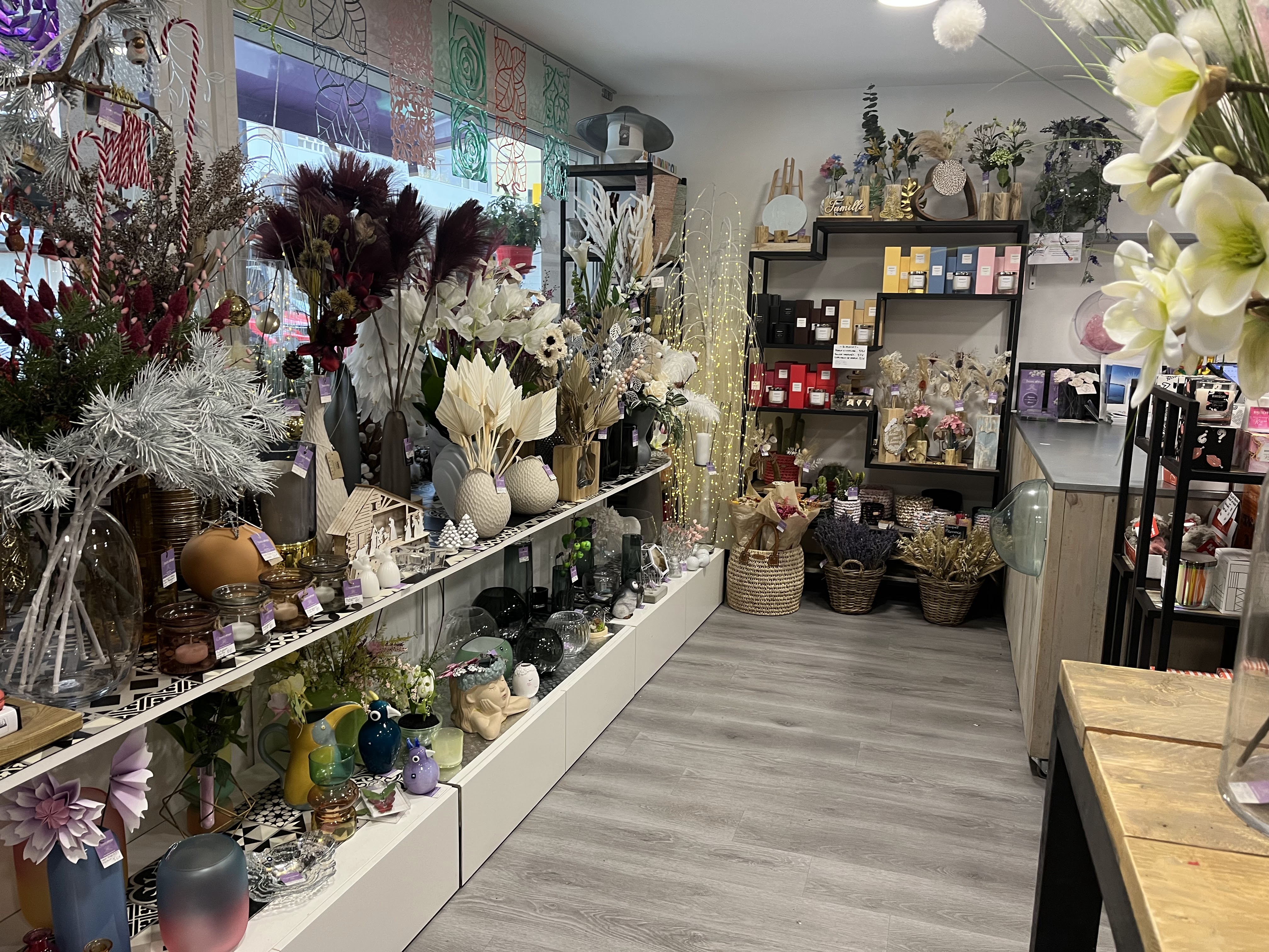 Joli magasin installé rue commando d Afrique Un beau choix de fleurs coupées en pots synthétiques plus articles de décorations aujourd’hui en plus décorations de Noël Dommage que ce magasin ne dispose que de peu d étalage extérieur pour valoriser ses fleurs Personne qui nous accueille sympathique et souriante une bonne commerçante ce qu on recherche aujourd’hui huî Nous reviendrons
