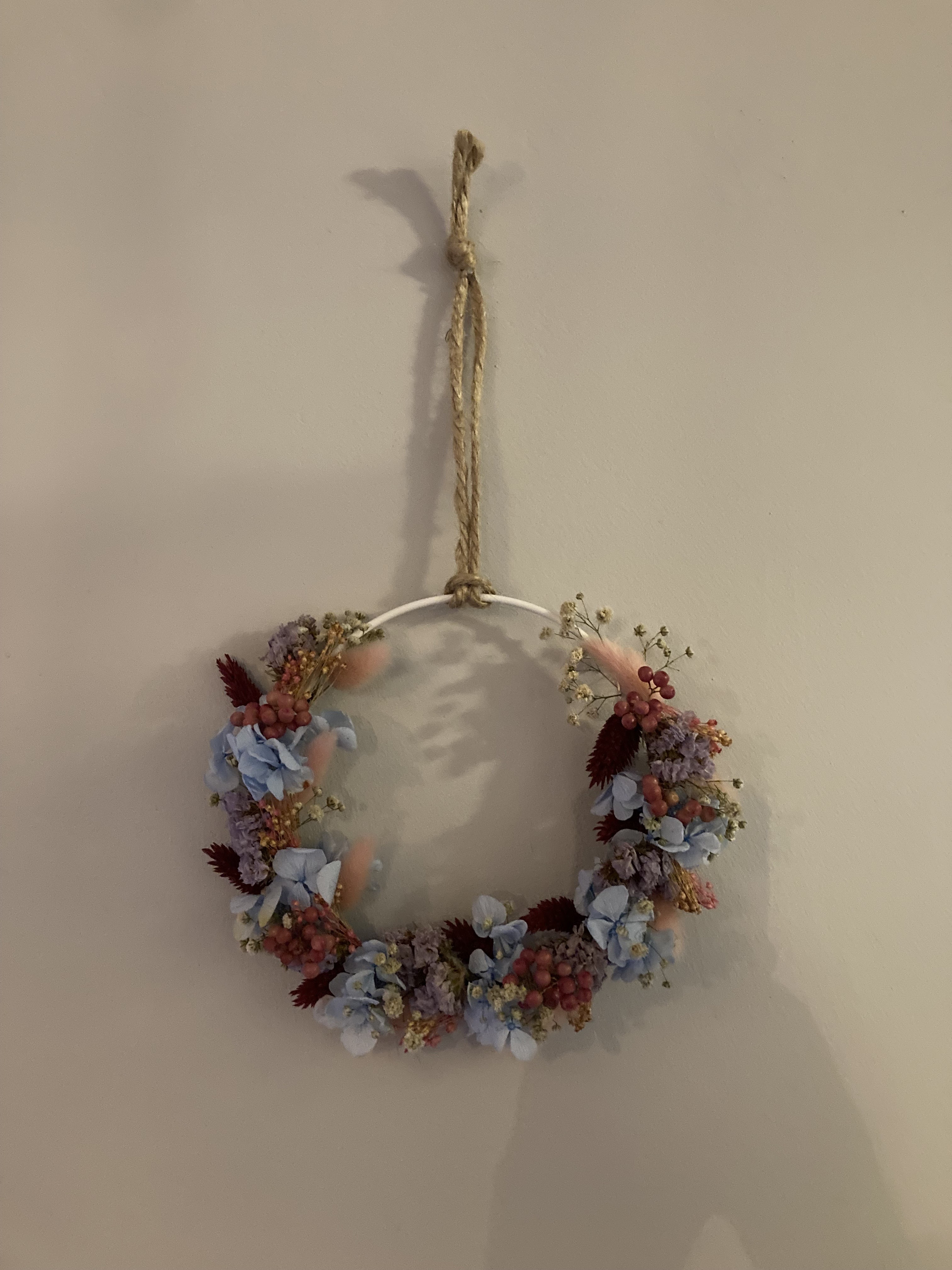 Mes enfants m ont offert un atelier couronne de fleurs séchées. J 'ai passé une bonne matinée avec ma fille à l 'atelier. Manon est à l 'écoute et nous donne de bons conseils. On est repartie chacune avec notre couronne , très différente car réalisé suivant nos gouts de couleurs. Merci Manon