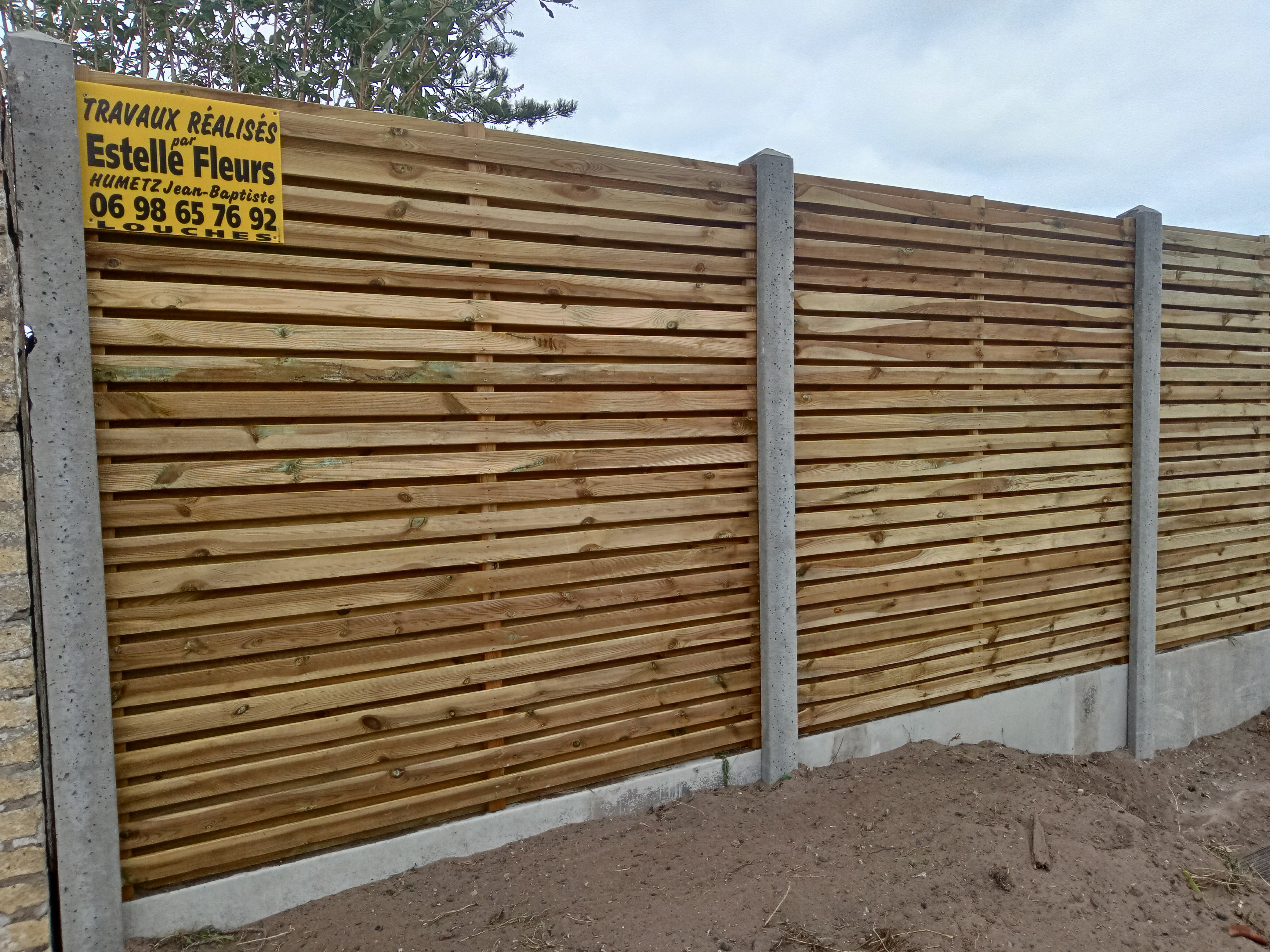 Chantier : Suite à un accident de la route , palissade refaite par Estelle fleurs ! Ouvriers Aimable , très compétent ,consciencieux !!👍 Par contre ,j'ai croisé le patron ,le jour du débuts des travaux ,un peu moins aimable , n'était pas content , car il y a eu des surprises avant de commencer , en même temps ce Mr fait un devis sans se déplacer pour voir la configuration des lieux , c'est fiés à une demande par mail du notaire ( je suis locataire ) Si ce Mr était venu voir avant , les ouvriers n'auraient pas perdus du temps , ne se seraient pas usés pour certaines choses qui aurait pu être anticipé 🤷 Merci aux ouvriers ,pour ce résultat 👏👏