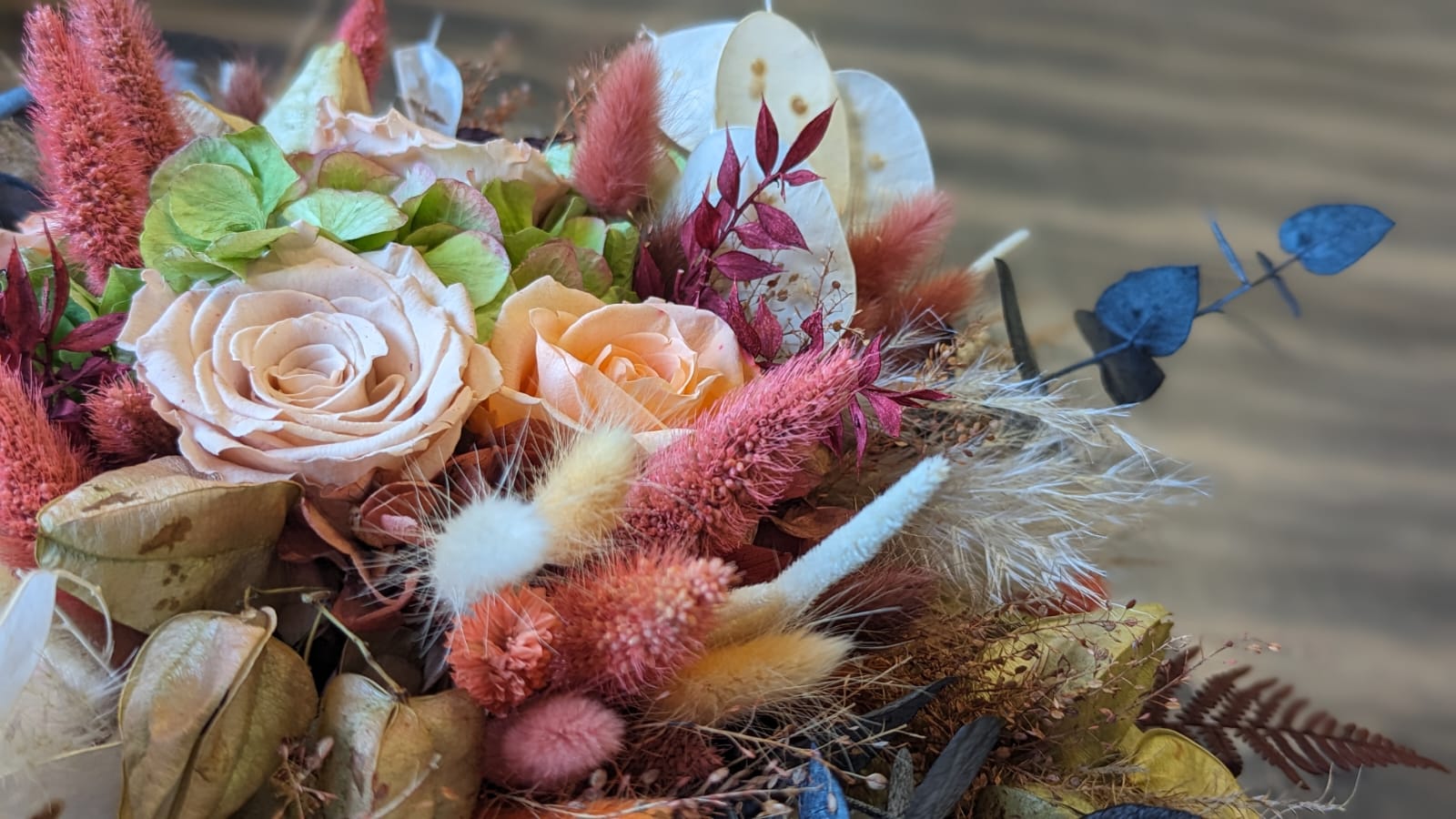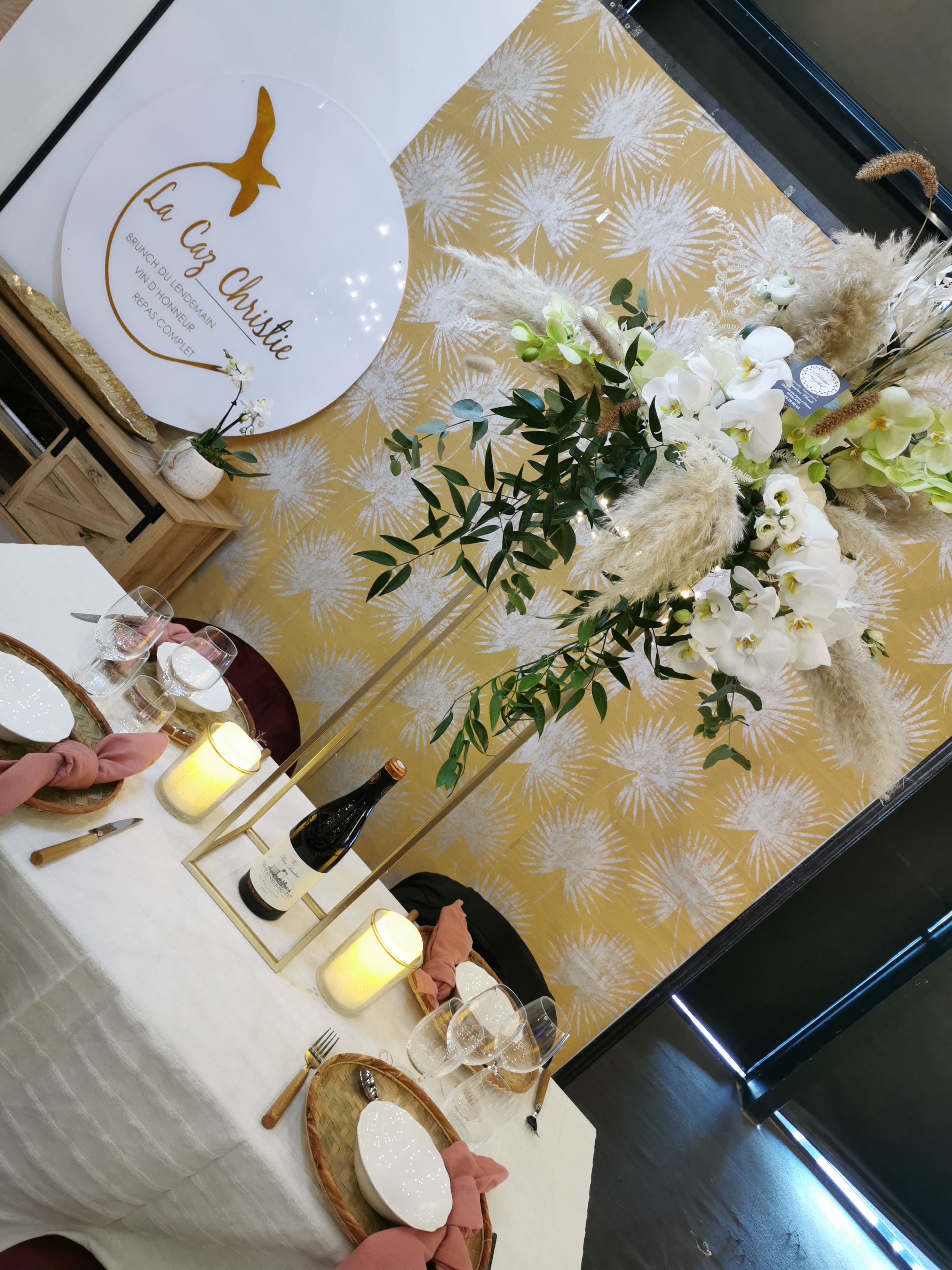 Mariage 8/04/2023 Claire et sa collègue ont été très à l’écoute et ont su saisir nos envies très rapidement, avec une demande particulière : que tout soit en fleurs séchées ou stabilisées. Les photos parlent d’elles mêmes ! Je recommande vivement leur travail et ne manquerait pas de revenir faire un atelier dans la boutique ! Encore merci