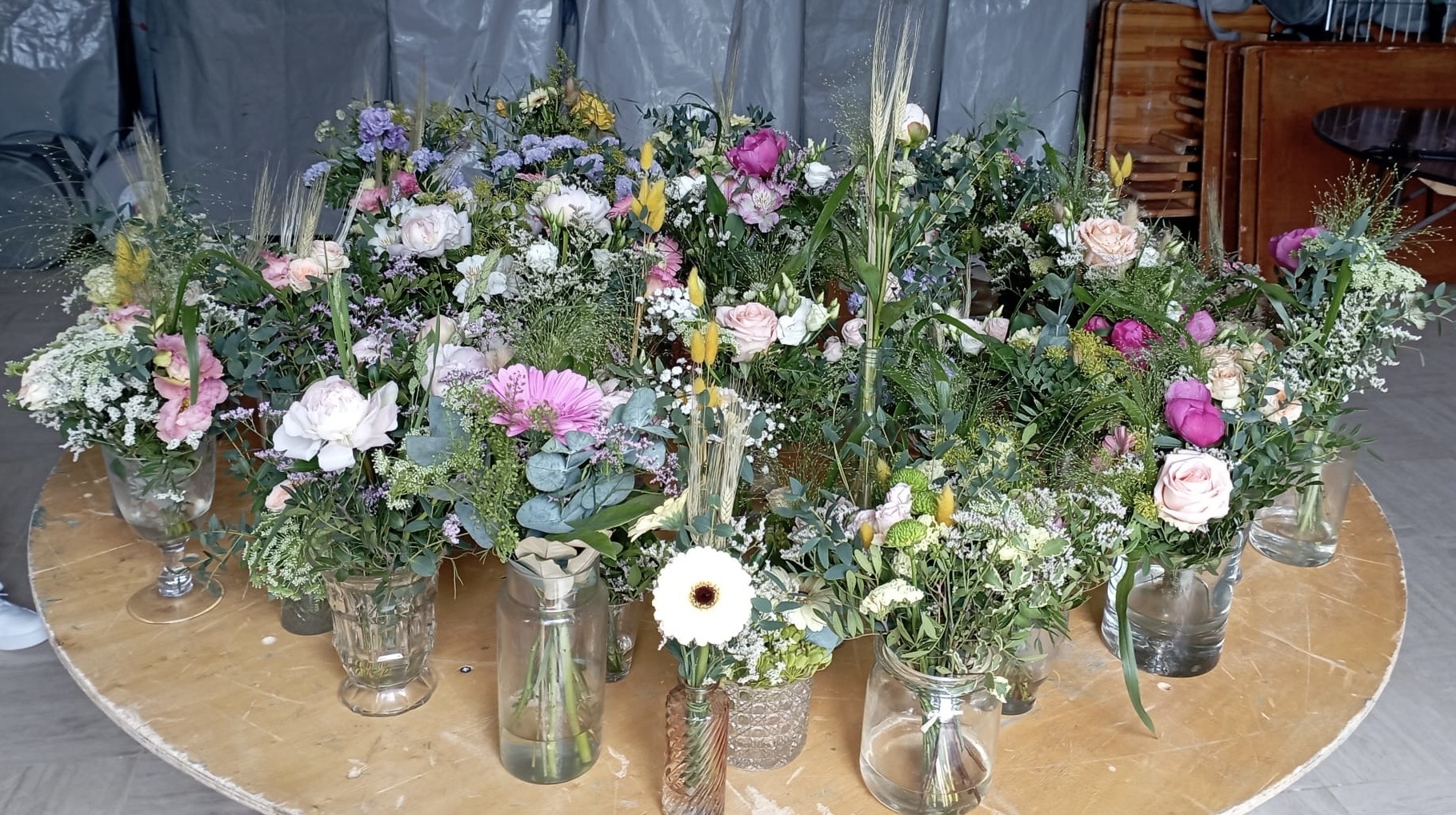 Merci Suzanne pour ces dizaines de bouquets magnifiques qui ont fleuri les tables de notre mariage.