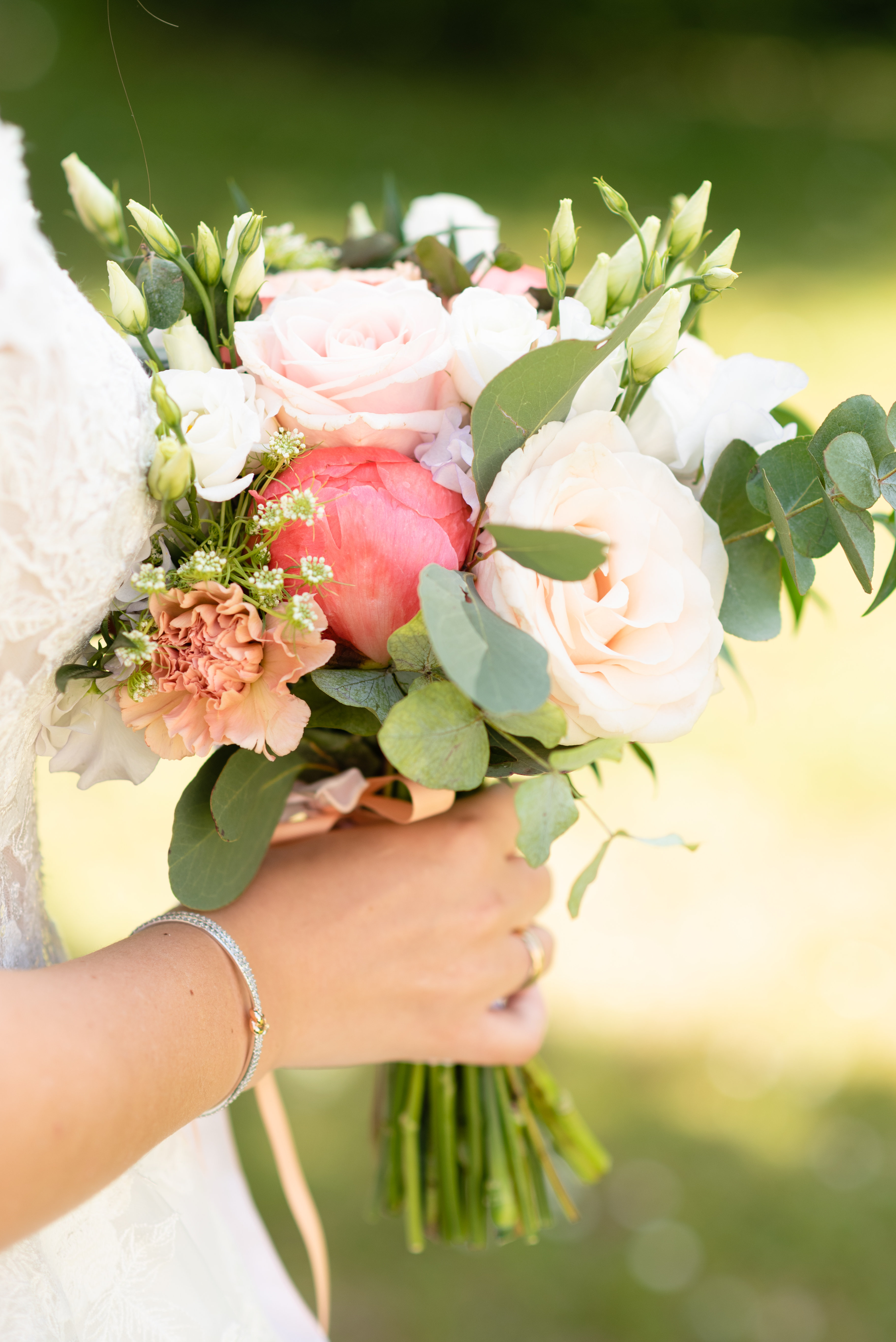 Ophélie et l'équipe de la Serre de Wissous ont fait un travail exceptionnel : magnifique bouquet de mariée en respect de nos choix de couleurs et fleurs, superbes centres de table, boutonnière et bracelets adorables, nous les recommandons à 1000%