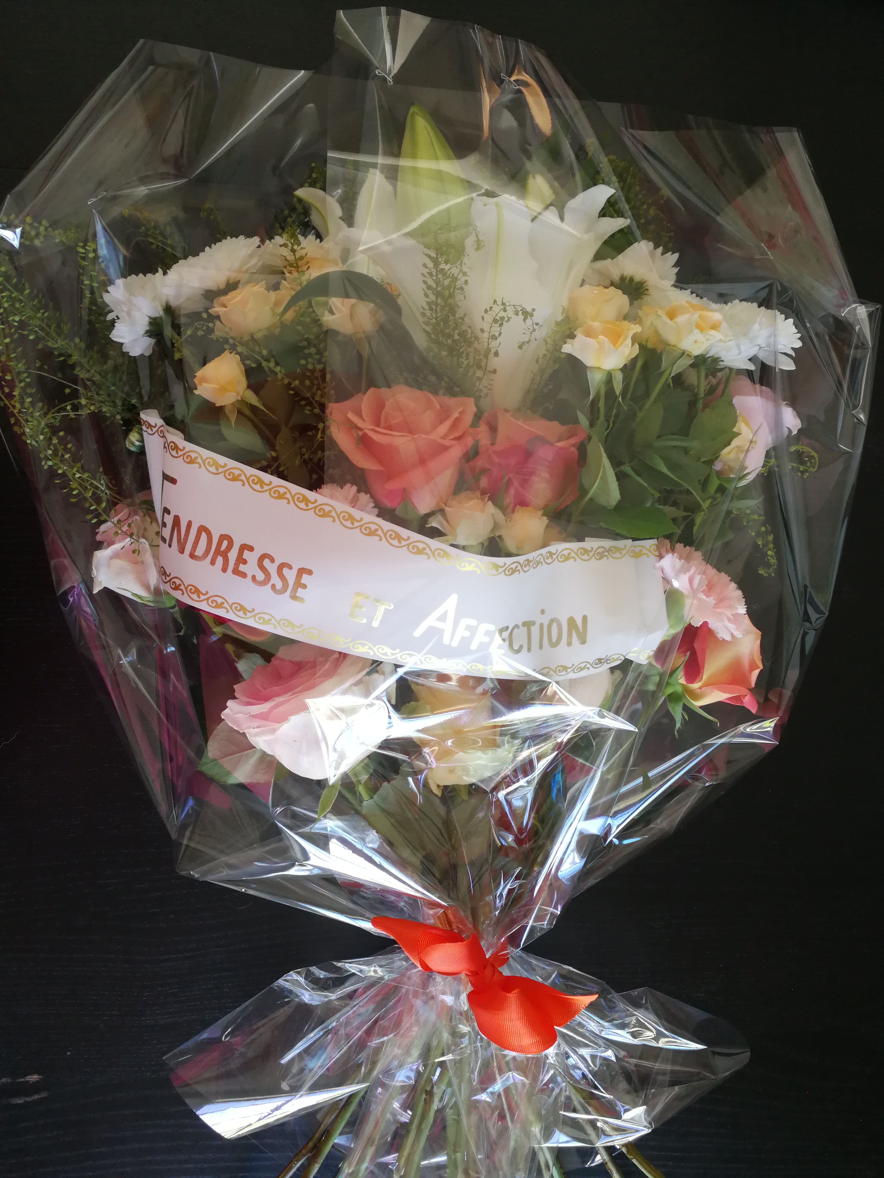 Magnifique bouquet commandé à distance (185 kms) livré à l'heure prévue. Commande basée sur la confiance par téléphone et réglée sur numéro d'IBAN. Adresse à recommander !