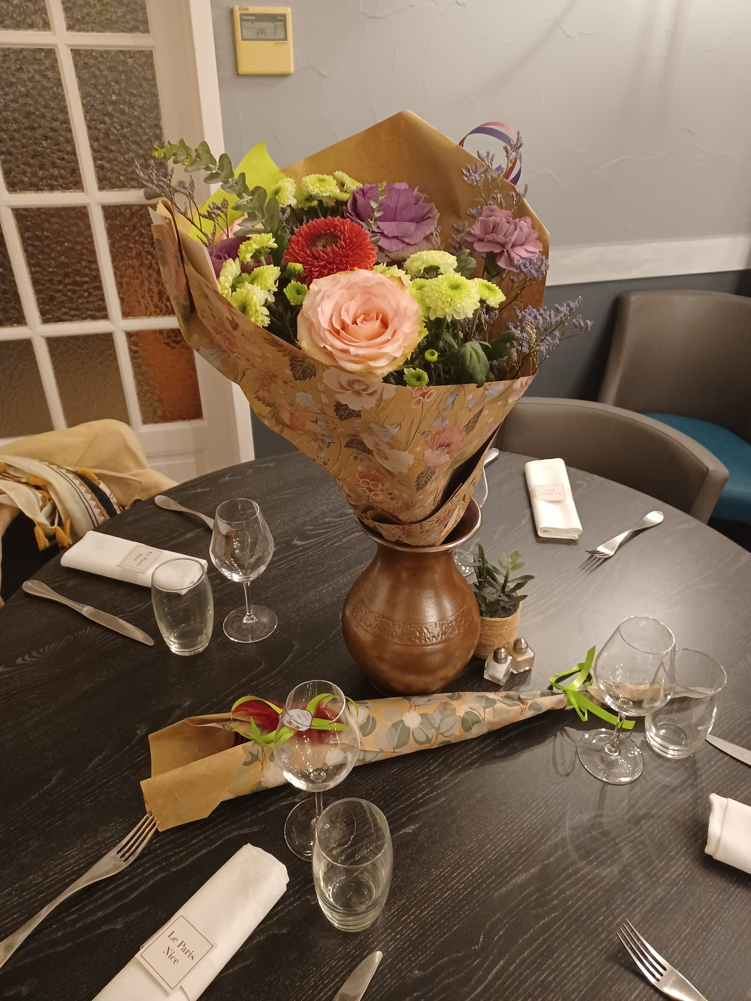 Très beau bouquet et super service, merci ! J'ai appelé à 17h et ai fait livrer un bouquet et une rose au restaurant le Paris-Nice le soir même. Nickel. La composition, laissée libre à la fleuriste, et la mise en scène ont beaucoup plu. Je recommande.